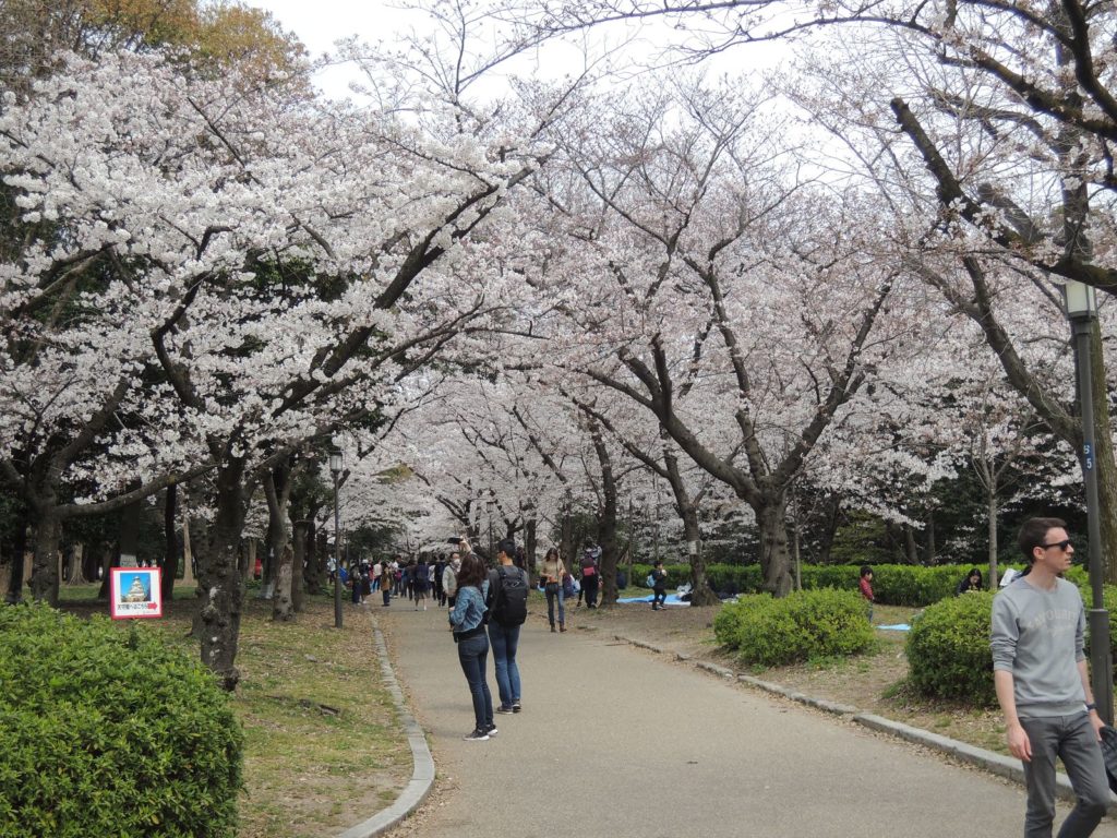 Ich lief dann einmal rund um die Burg und bewunderte die allgegenwärtige Sakura zusammen mit vielen Japanern. Bemerkenswert sind hier übrigens die Steinplatten, die Teilweise für die Mauern verwendet wurden…